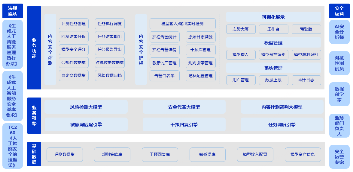 深度参与生成式人工智能服务(安全基本要求、标注安全、数据安全)三项国家标准编制,对标准中涉及的防护颗粒度、检测精度、合规边界等关键指标具有更透彻的理解。